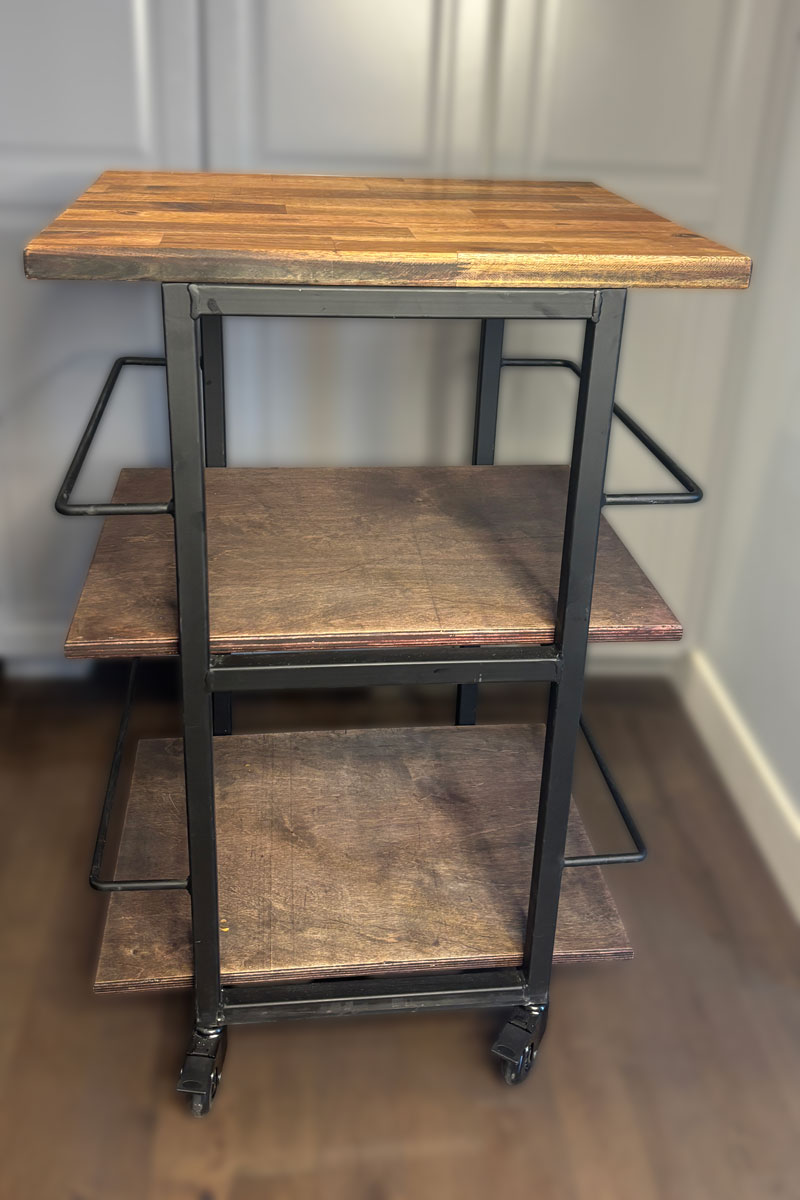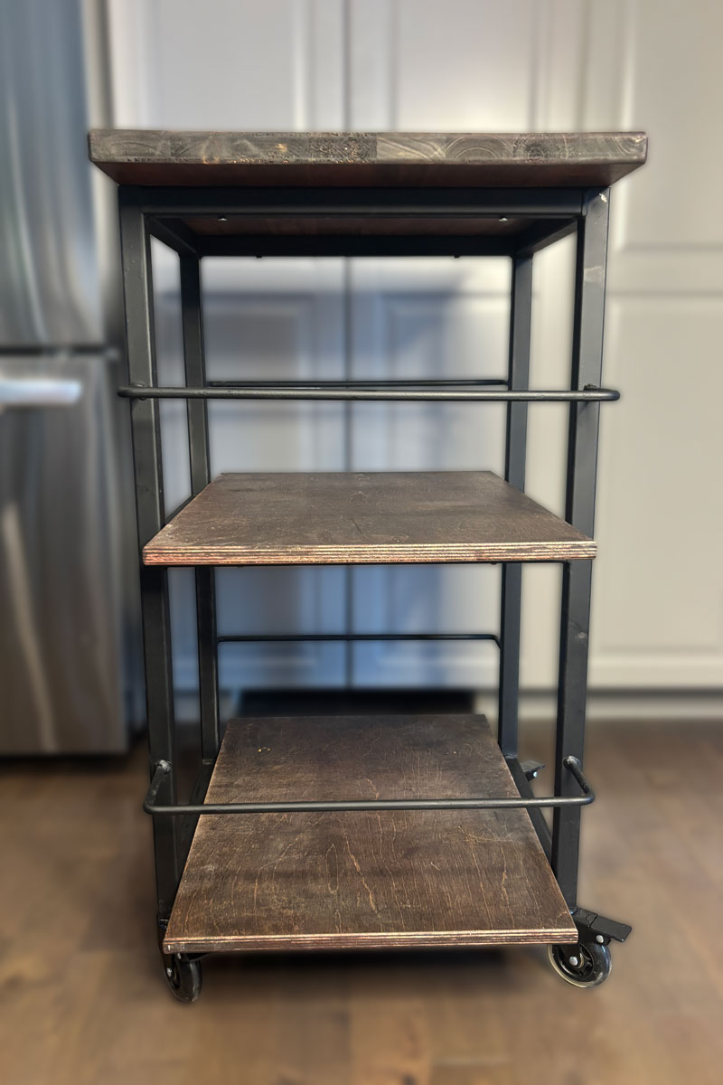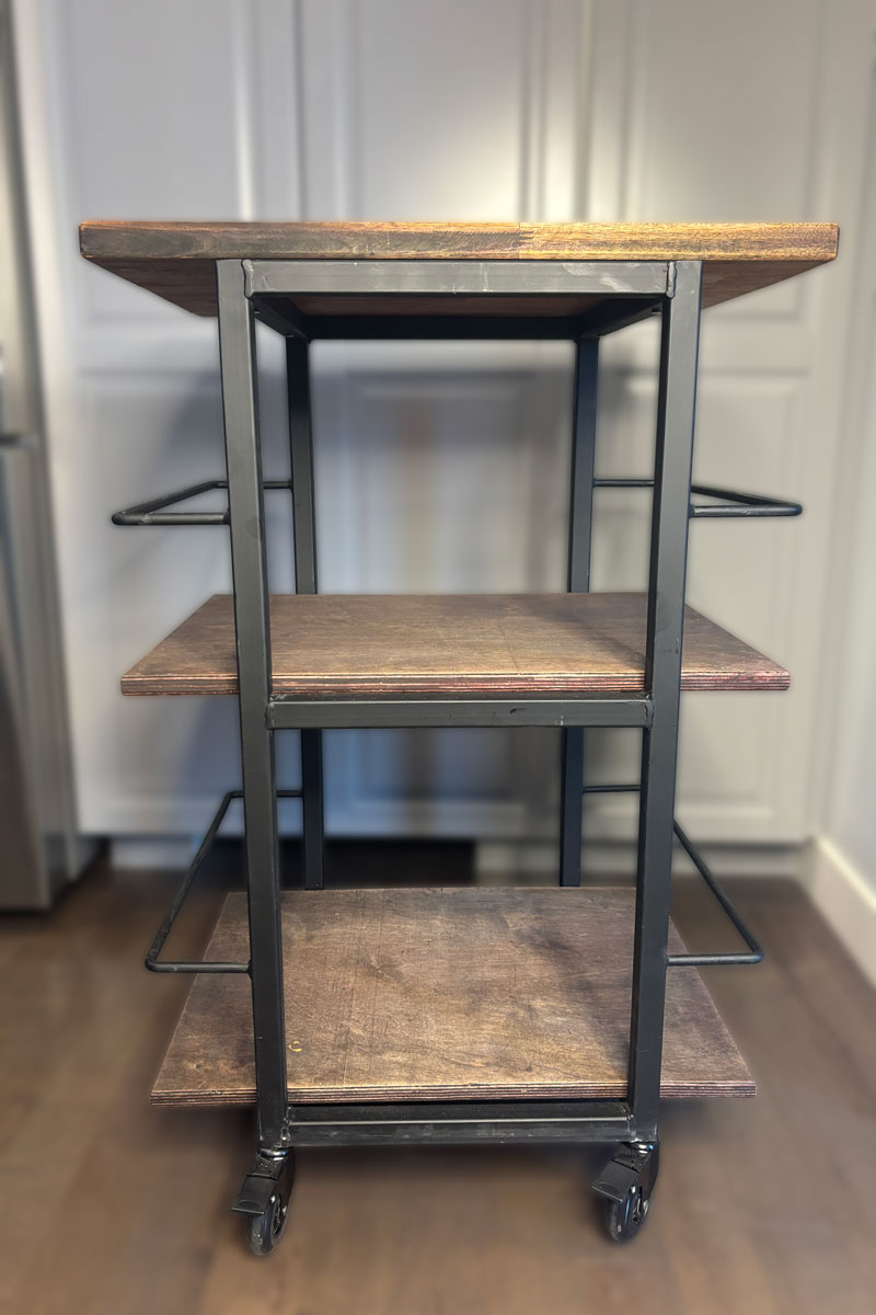 Upgrade your kitchen workflow with a handmade steel‑frame kitchen cart, crafted in a small Calgary, Alberta workshop. Designed specifically to hold a KitchenAid stand mixer, dry‑goods canisters, and everyday baking essentials, this cart brings strength, mobility, and organization to your cooking space.